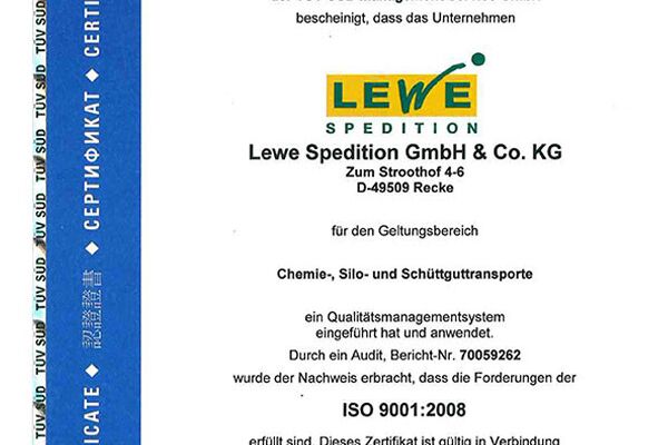 Die LEWE Spedition erfüllt beständig die Zertifizierungsstandards für den Umweltschutz und bewussten Umgang mit Ressourcen.