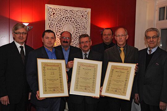 In einer Feierstunde ehrten die Geschäftsführer Ewald und Manfred Lewe verdiente Mitarbeiter der Firma Lewe Bauunternehmung.